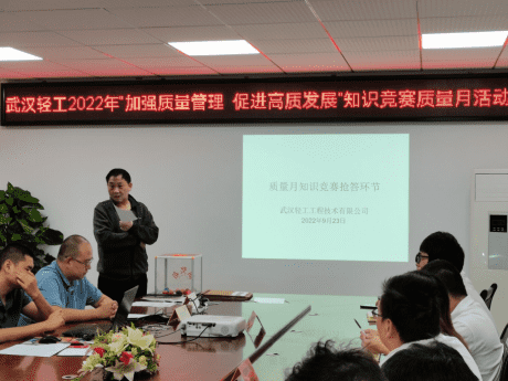 為貫徹落實(shí)湖北省住房和城鄉(xiāng)建設(shè)廳《關(guān)于組織開(kāi)展2022年“質(zhì)量月“活動(dòng)的通知》廳頭[2022]1793號(hào)文的精神、武漢建筑業(yè)協(xié)會(huì)建筑檢測(cè)分會(huì)《關(guān)于開(kāi)展2022年“質(zhì)量月”活動(dòng)的通知》精神、為促進(jìn)工程質(zhì)量不斷提升,營(yíng)造我公司“質(zhì)量至上”的良好氛圍,樹(shù)立質(zhì)量第一的理念意識(shí),我公司以“質(zhì)量月”為契機(jī),根據(jù)本公司發(fā)展需求,為規(guī)范管理,以實(shí)際行動(dòng)迎接黨的二十大勝利召開(kāi),將質(zhì)量管理活動(dòng)抓實(shí)抓牢,強(qiáng)調(diào)履職盡責(zé),為公司平穩(wěn)有序發(fā)展打下堅(jiān)實(shí)基礎(chǔ)。武漢輕工工程技術(shù)有限公司(以下簡(jiǎn)稱武漢輕工)于2022年9月23日組織開(kāi)展了“武漢輕工2022年加強(qiáng)質(zhì)量管理促進(jìn)高質(zhì)發(fā)展”知識(shí)競(jìng)賽質(zhì)量月活動(dòng)。
